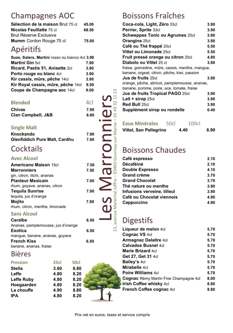 Carte des boissons